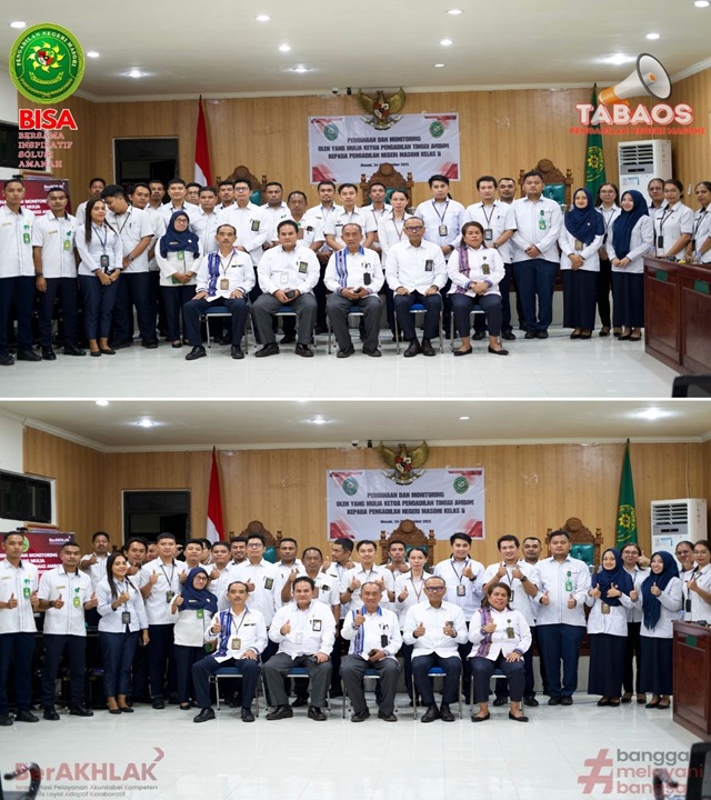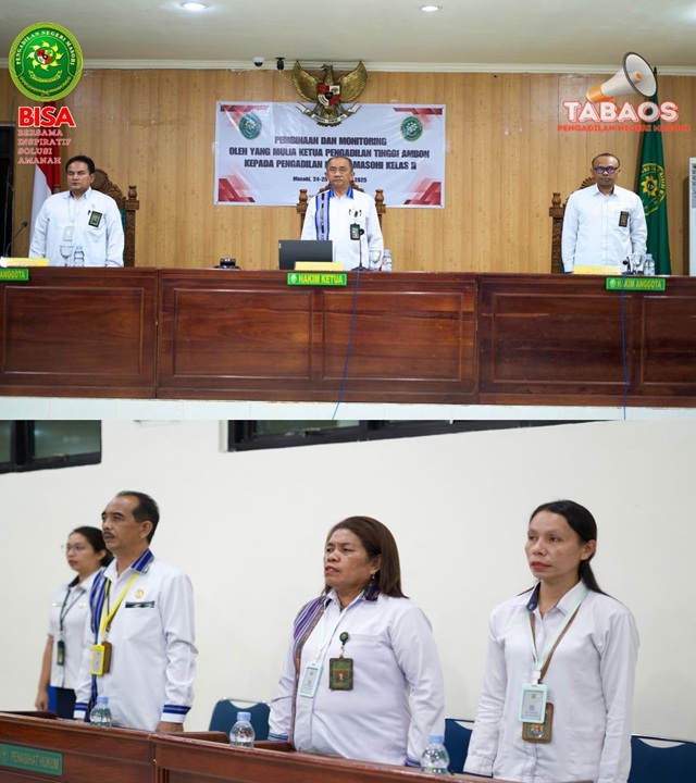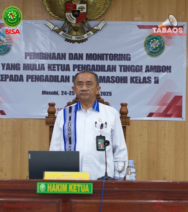 Masohi, 24 November 2025, Pembinaan dan Monitoring oleh YM. Ketua Pengadilan Tinggi Ambon kepada Pengadilan Negeri Masohi yang diikuti oleh Rombongan Pengadilan Tinggi Ambon, YM. Ketua Pengadilan Negeri Masohi dan seluruh keluarga besar Pengadilan Negeri Masohi yang dilaksanakan di ruang sidang utama Pengadilan Negeri Masohi.