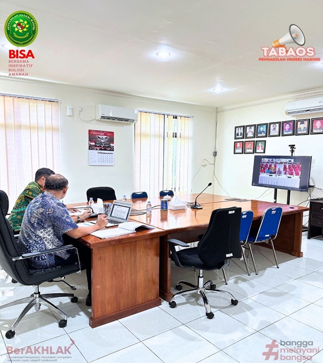 Masohi, 27 November 2025, YM. Ketua dan Sekretaris Pengadilan Negeri Masohi mengikuti rapat evaluasi penyerapan anggaran secara virtual yang bertempat di ruang rapat Ketua Pengadilan Negeri Masohi.